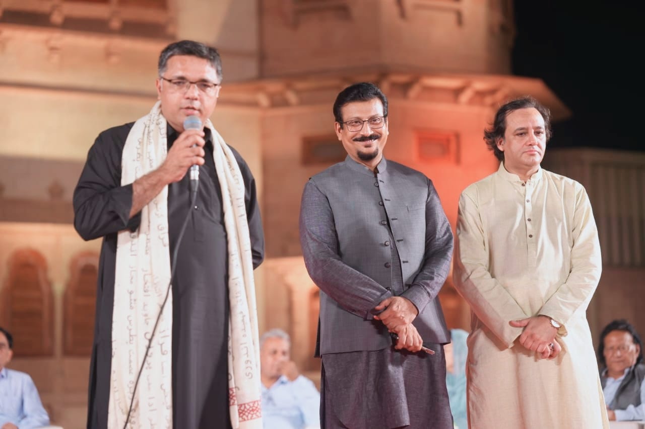 The decor at Mohatta Palace was done by Syed Mubashir Imam and his team at ChannelTek. The expertise in lighting and design enhanced the look of the huge garden of the palace which was filled with people from all walks of life interested in hearing good poetry. The presence of young people was heartwarming for the organizers, considering the abject situation of the delightful language, amongst young people today.