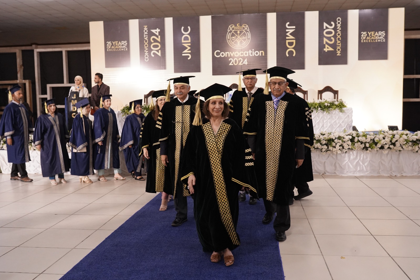 Professor Dr. Amjad Siraj, Vice Chancellor of JSMU, presided over the convocation. He addressed the graduating class, congratulating them on their achievements and acknowledging the significant contributions of parents and teachers in shaping their success. Professor Siraj commended JMDC for its reputation as a distinguished medical college, providing students with high-quality education at an accessible cost. He emphasized the critical need for healthcare professionals in Pakistan and urged the graduates to serve their country by addressing the shortage of doctors.